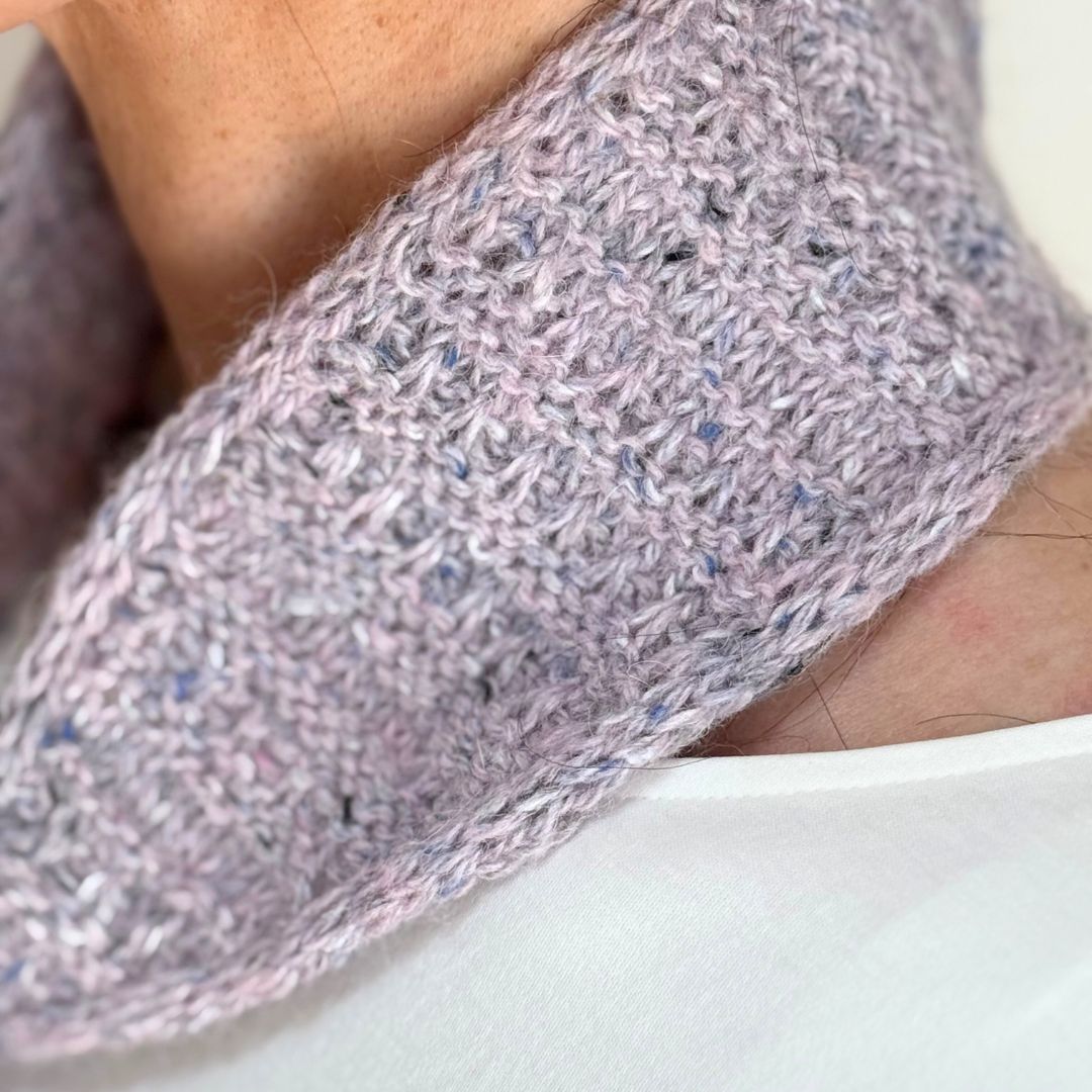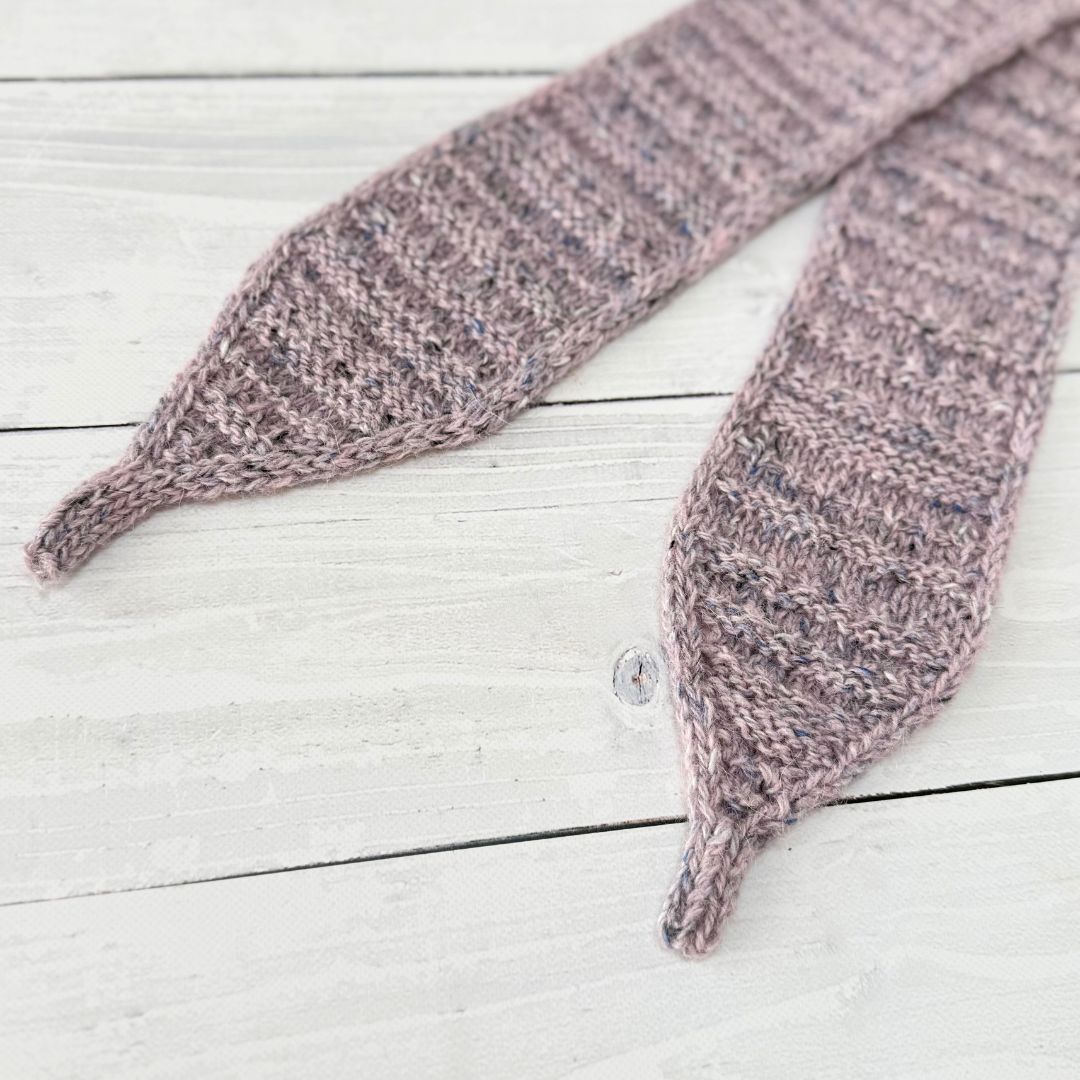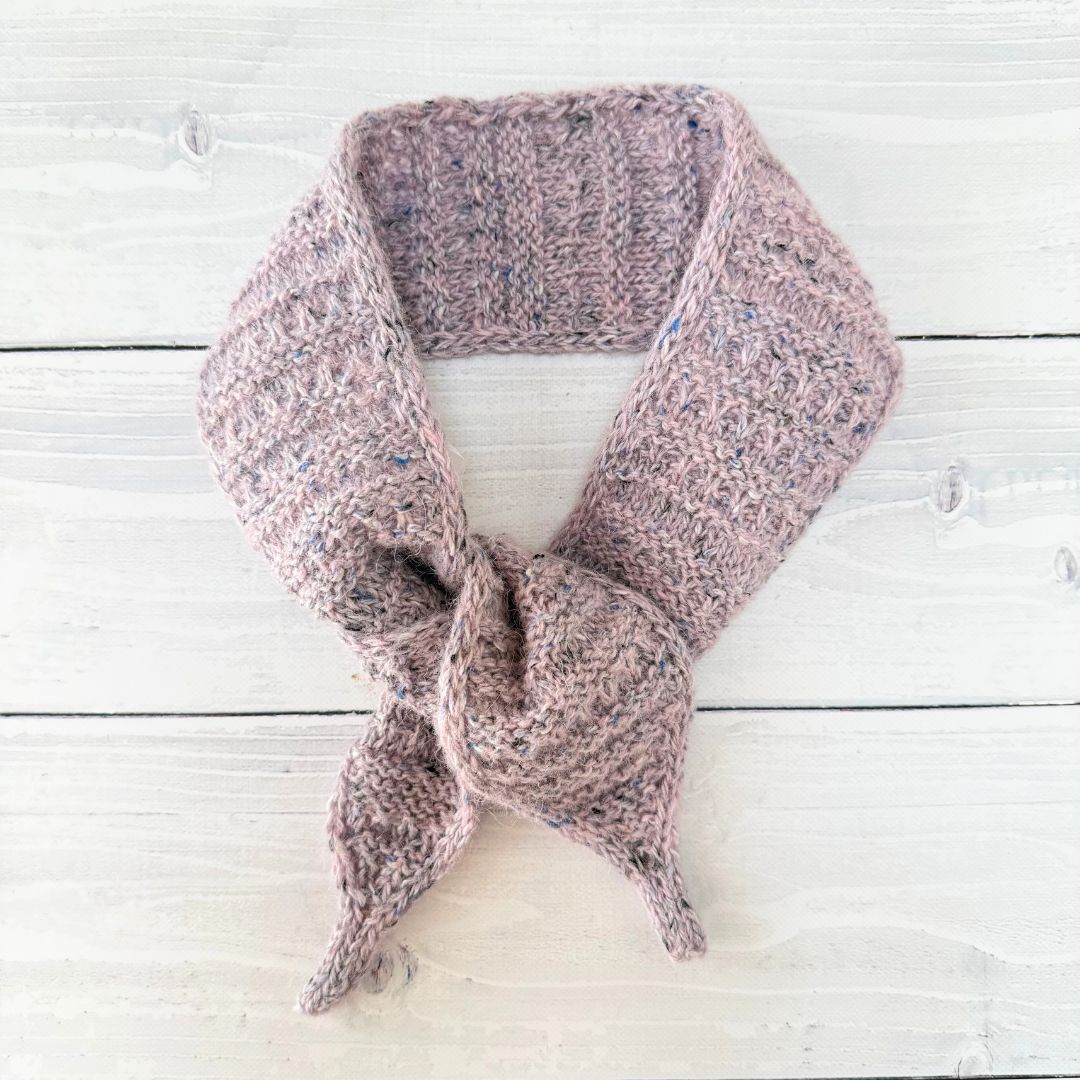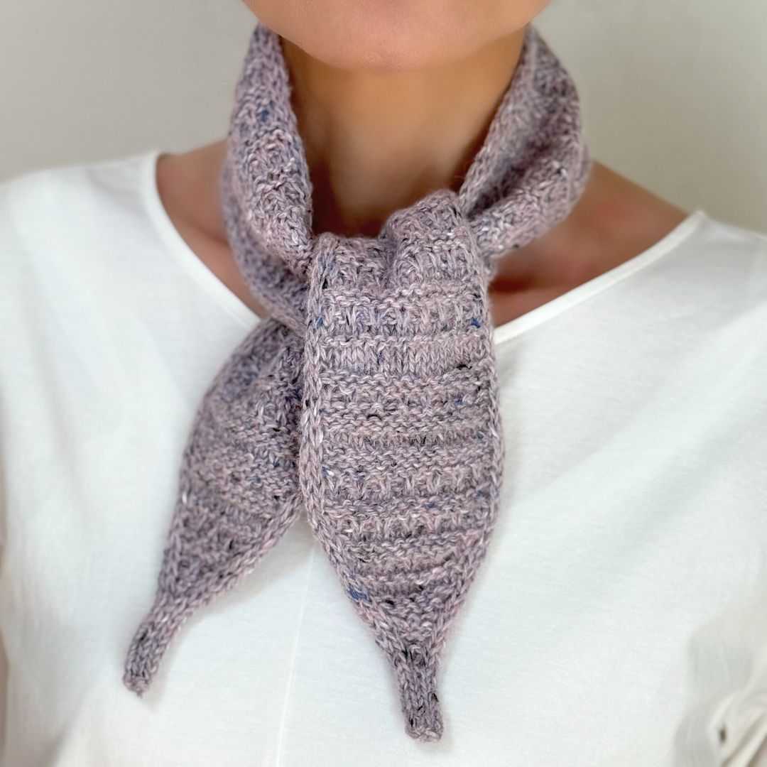 このパターンは首にちょこっと一巻き、肌寒さにお役立ちのスカーフです。